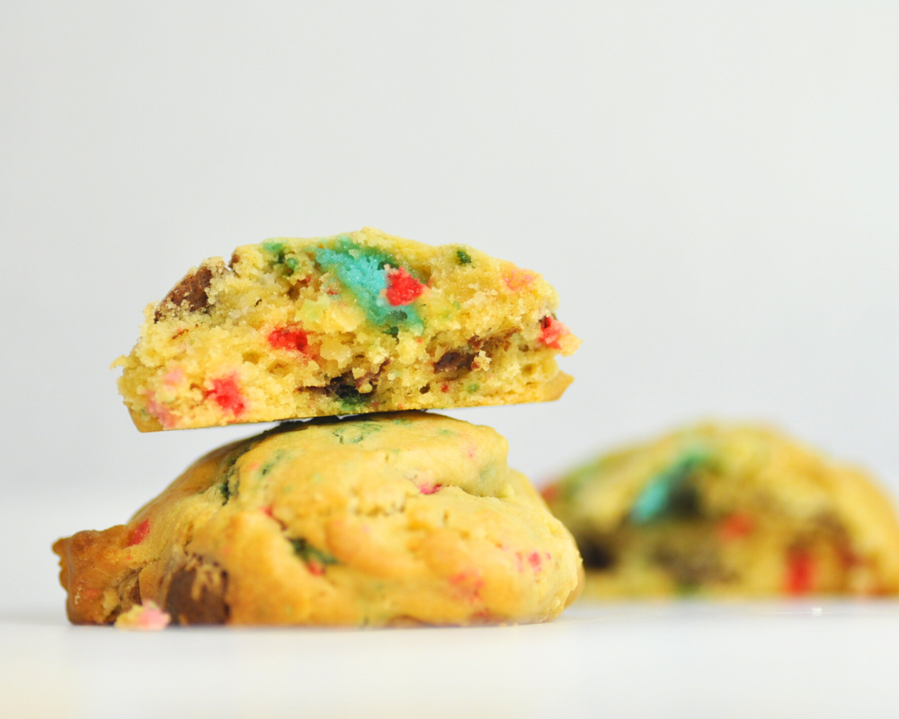 Prosto z opakowania: Ciesz się maślanym smakiem i kolorową strukturą ciasteczek.