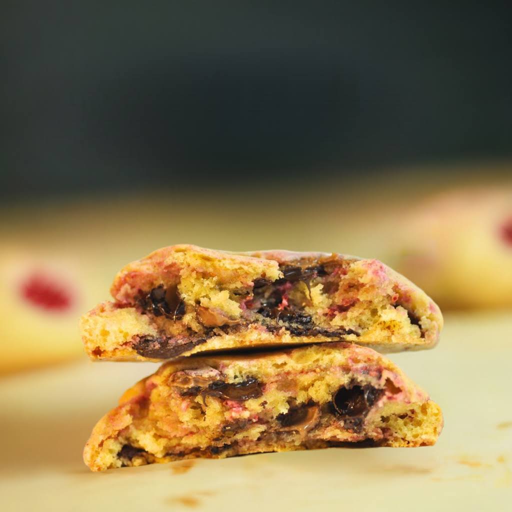 Składniki: Masło, mąka pszenna, jajka, cukier trzcinowy, proszek do pieczenia, sól, aromat waniliowy, liofilizowane maliny,
